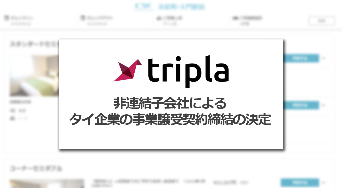 宿泊施設向けITソリューションを展開するtripla株式会社(本社:東京都新宿区、代表取締役CEO 高橋 和久、代表取締役CPO 鳥生 格、以下「トリプラ」)は、2026年2月10日開催の取締役会において、当社の非連結子会社であるtripla (Thailand) Co., Ltd.(以下「tripla Thailand」)が、The TPM GROUP Co., Ltd.(以下「TPM」)が運営する宿泊施設向けオンライン予約システム「booking2hotels.com」の事業譲受を行う契約を締結することを決議いたしましたので、下記のとおりお知らせいたします。 (左:トリプラ 高橋、右:TPM Tanit Bordeesorn氏) ◼︎本事業譲受の目的トリプラは、宿泊業界に特化したSaaS型のサービスとして、自社予約比率向上と会員獲得を支援する予約システム「tripla Book」や、AIチャットボット「tripla Bot」、CRM・マーケティング オートメーションサービス「tripla Connect」、広告運用代行サービス「tripla Boost」等を提供しており、東アジア・東南アジアを中心とした事業拡大を進めております。当社グループのタイ事業は、tripla Thailandが事業拡大を担っておりますが、タイにおける事業拡大および顧客基盤の強化を目的として、タイで同様のサービスを展開するTPMが保有する宿泊施設との顧客契約、販路等を譲り受けることを決定いたしました。 本事業譲受により、タイ市場におけるホテル向け予約システムの導入拡大を加速させるとともに、現地でのブランド認知および営業基盤の強化を図り、当社グループの海外展開を推進してまいります。 ◼︎TPM CEO Tanit Bordeesorn氏 コメントこのたび、宿泊施設向けにITソリューションを提供するトリプラとの協業を発表できることを大変嬉しく思います。本パートナーシップにより、先進的な予約システム技術をタイのホテル市場に導入し、業務効率の向上、顧客エンゲージメントの強化、ならびにデジタル市場における競争力のさらなる向上を支援してまいります。本協業は、イノベーションとテクノロジーを通じて、タイのホスピタリティ業界の発展を加速させる重要な節目となるものと考えております。 ◼︎トリプラ 代表取締役CEO 高橋和久 コメントこのたび、当社は、宿泊施設向けオンライン予約システム「booking2hotels.com」事業の事業譲受を実施する運びとなり、大変嬉しく思っております。競争が非常に激しいタイ市場において、本事業の譲受を通じて契約施設数の拡大を図るとともに、市場での影響力を一層強化していくことを目指します。特に、多くの契約実績を有するパタヤエリアにおいては、同地域での存在感を高めるとともに、「tripla Bot」や「tripla Connect」をはじめとした当社の関連サービスのアップセルを推進し、事業成長を加速させてまいります。 ■今後の見通し契約締結日 2026年2月28日(予定)本事業譲受日 2026年8月31日まで(予定) tripla Thailandは非連結子会社であるため、本事業譲受が当社の2026年10月期連結業績に与える影響は限定的であると見込んでおります。今後、本事業譲受の対象となった事業を含むtripla Thailandの業績が、当社の連結業績に与える影響が重要となる場合には、同社を連結することといたします 詳細は以下よりご確認ください。 ・IRニュース:https://tripla.io/ir/news/ (非連結子会社による事業譲受契約締結の決定に関するお知らせ) ■tripla株式会社概要・会社名:tripla株式会社・本社所在地:東京都新宿区西新宿4丁目15−3 住友不動産西新宿ビル3号館・会社設立:2015年4月15日・資本金: 8億6,970万円(2025年10月末時点)・代表取締役CEO:高橋 和久・代表取締役CPO:鳥生 格・URL:https://tripla.io/...